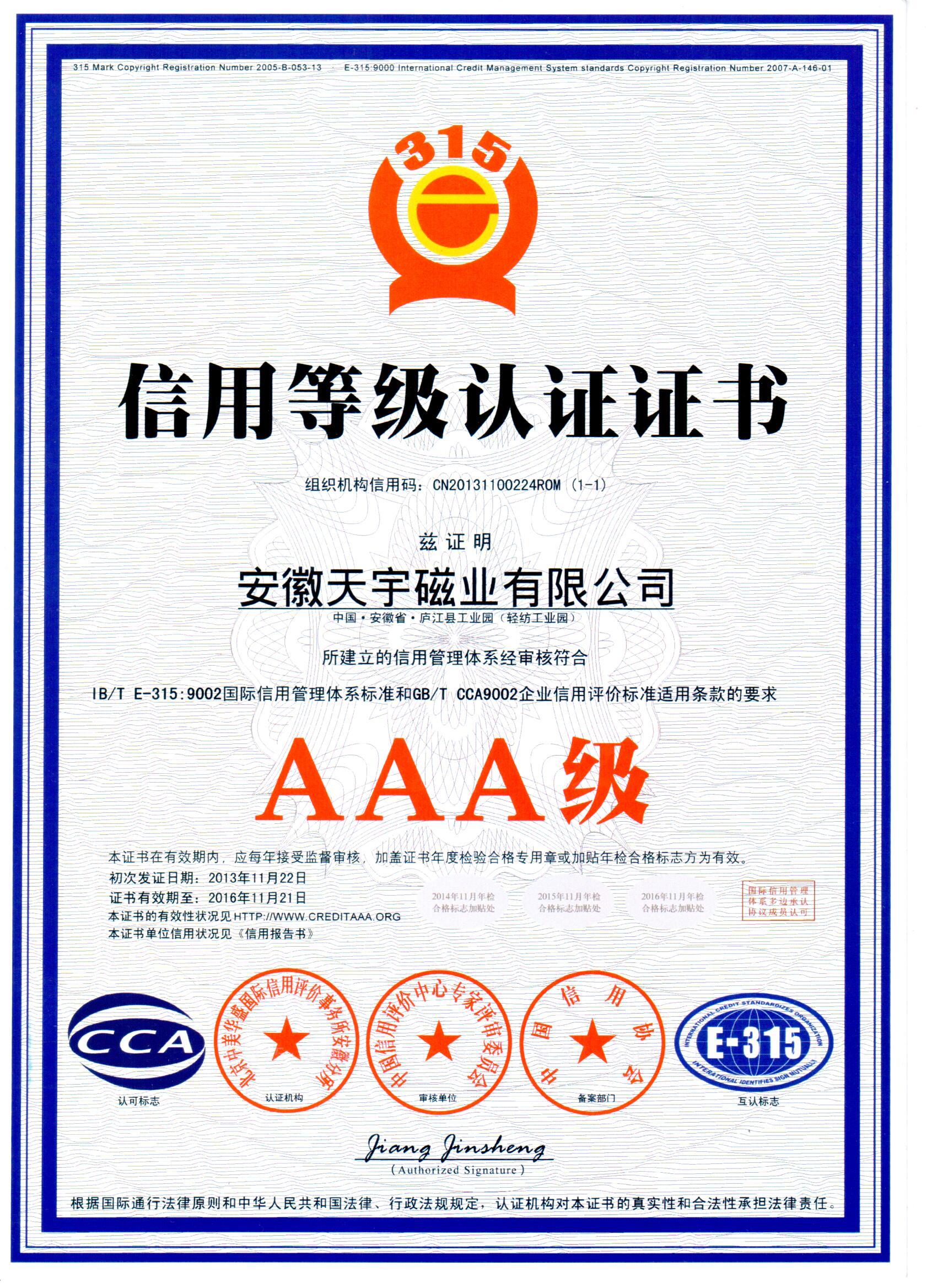 AAA级-信用证书